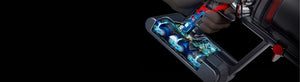Sistema de separación Root Cyclone™. Los 14 ciclones pioneros de Dyson capturan y separan el polvo y los residuos, por lo que no hay pérdida de succión.